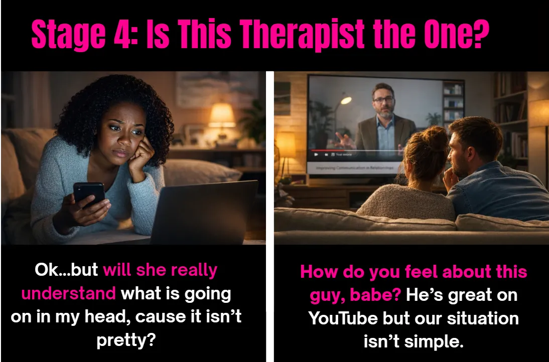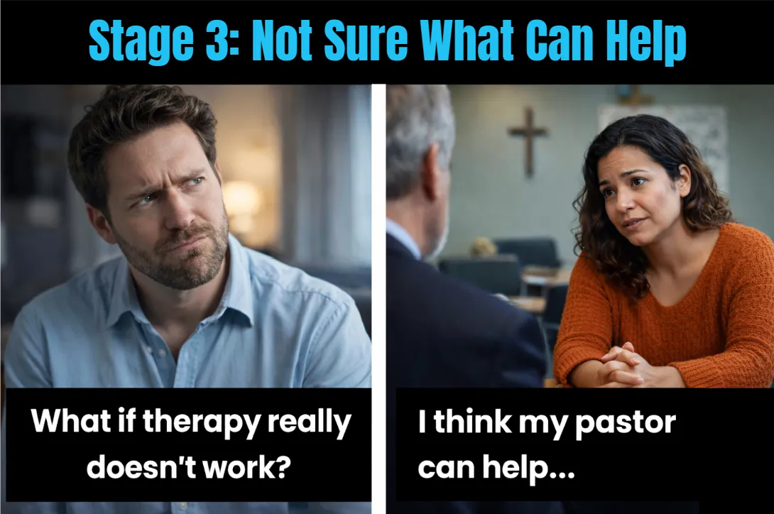 Until they reach Stage 2, any invitation to therapy lands as irrelevant. They don't think they have a problem therapy can address. They think this is just who they are.