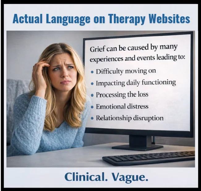 But when you try to communicate that to a potential client on a webpage or social media post, something gets lost. The language that makes perfect sense in a therapy session sounds abstract on a webpage or Facebook post.