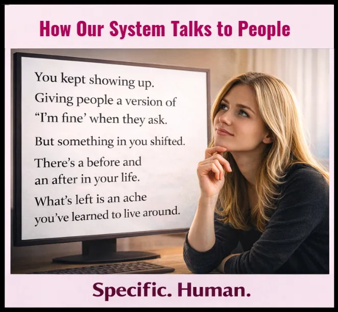 "Trouble moving on" — assumes they know they're stuck. Many don't. They think they're managing.